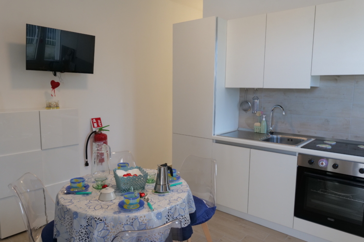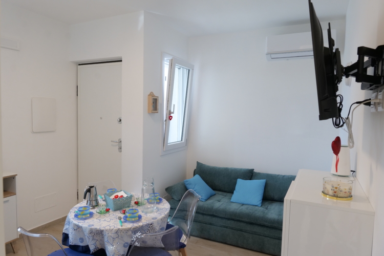 Il Villino Venere dispone di una camera matrimoniale, un soggiorno luminoso con divano letto, bagno e angolo cottura completamente attrezzato, ideale per preparare i pasti in autonomia.
